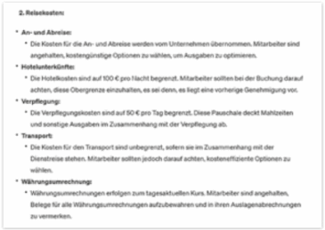 Alternativ lassen sich Reiserichtlinien auch mit ChatGPT erstellen. Der Prompt hierzu lautet:
