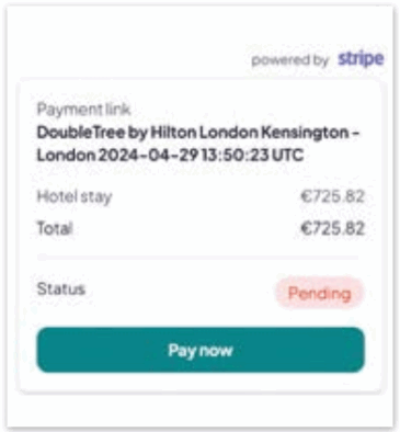 Sobald die Hotelbuchung erfolgt ist, können Sie über ähnliche Abfragen nach Flügen suchen und diese buchen. Relevante Eingaben hierfür sind Abflughafen (hier: „Frankfurt“), bevorzugte Abflugzeit (hier: „Morgens“), bevorzugte Airline (hier: „British Airways“) und Auswahl der Buchungsklasse (hier: „Business“). Auch hier erfolgt die Zahlungsabwicklung über Stripe, Inc., sobald Sie sich auf einen Flug festgelegt haben.