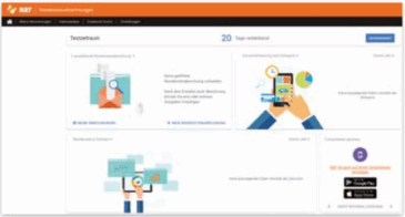 Die Anwendung N2F können Sie über einen Zeitraum von 20 Tagen als Web-App und Mobile-App kostenlos testen, nachdem Sie Namen, E-Mail-Adresse, Passwort und Firmengröße eingegeben haben. Das Dashboard zeigt dabei standardmäßig noch offene Reisekostenabrechnungen und die Reisekosten nach Kategorie sowie nach Zeitraum an. Unter „Meine Abrechnungen“ können Sie neue Reisekostenabrechnungen erstellen, bereits bestehende durchsuchen und filtern. Im Tab „Datenanalyse“ können Sie unter anderem Daten und Quittungen exportieren sowie eigene und standardisierte Analysen durchführen. Die „Erweiterte Suche“ erlaubt, effizient nach bestimmten Reisekosten und Positionen zu suchen.